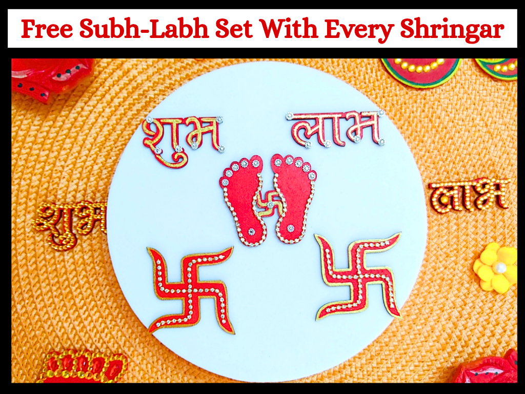 Diwali Special Two-In-One Ring Style Laddu Gopal Dress – Heavy Poshak with Decorative Ring, Handmade Kundan & Floral Patches with Mukut, Patakha Set, Bansuri & Full Shringar Set