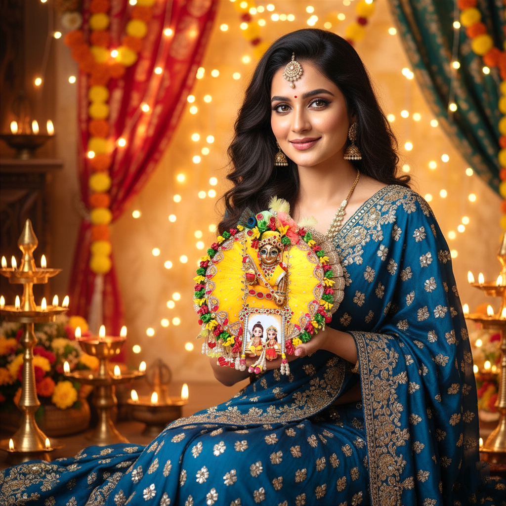Essential Set (4-Piece Set) - Includes: Handcrafted Heavy Poshak, Mukut or Chunri, Matching Bansuri, and a Surprise Gift.
