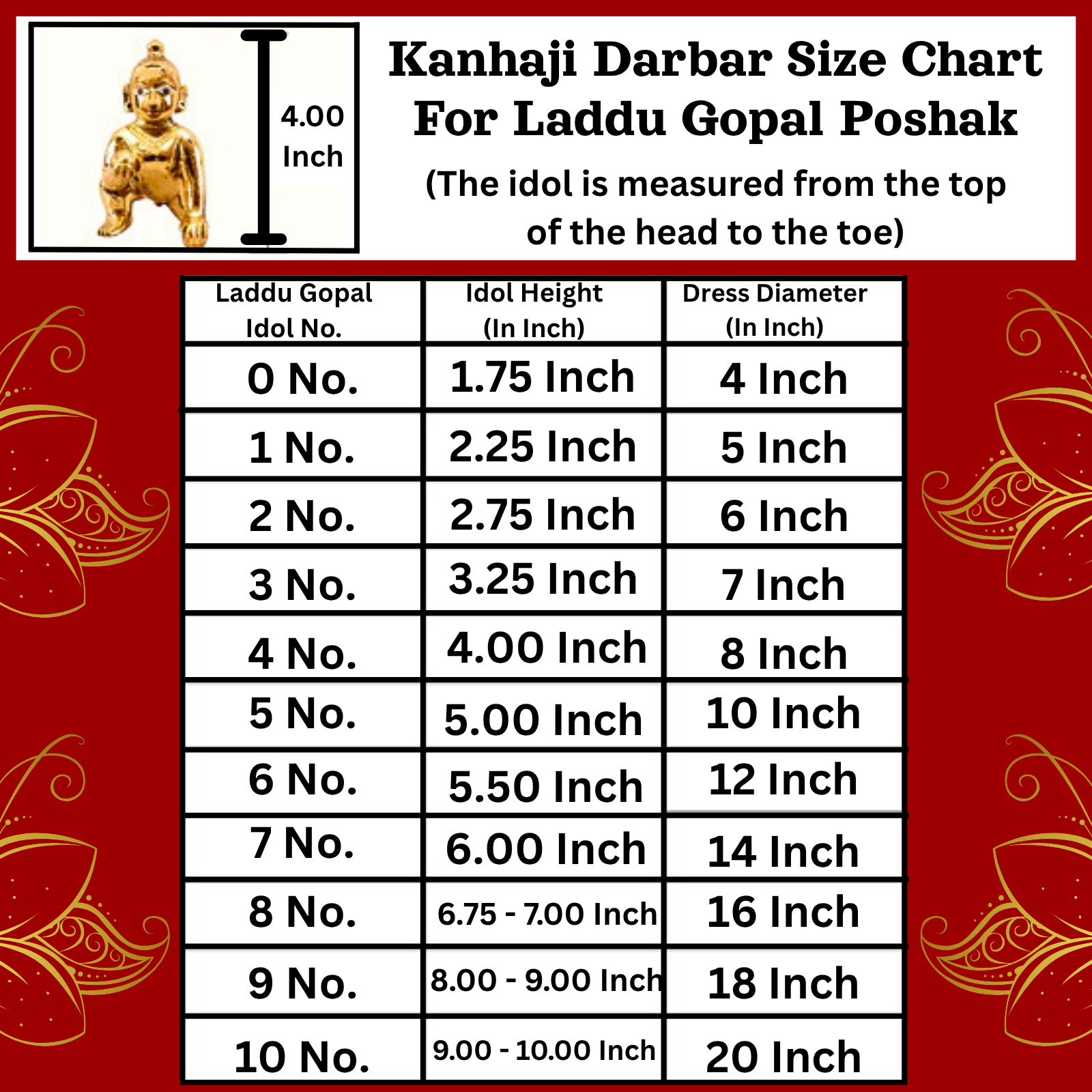 Size guidancefor your Laddu Gopal and Bal Radha Rani is available in thelast imageof theimage section— please refer to it for accurate measurements.