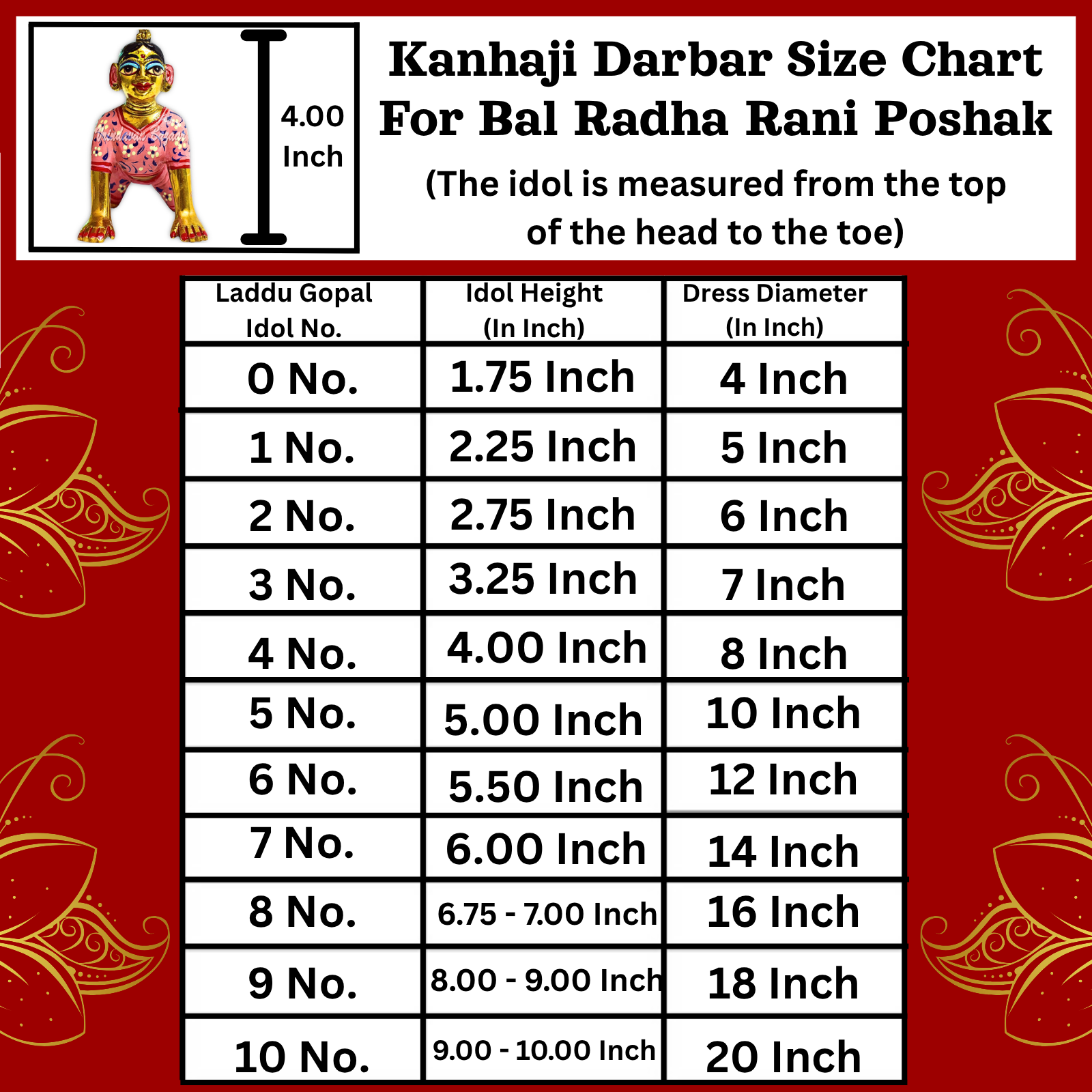 Size guidancefor your Laddu Gopal and Bal Radha Rani is available in thelast imageof theimage section— please refer to it for accurate measurements.
